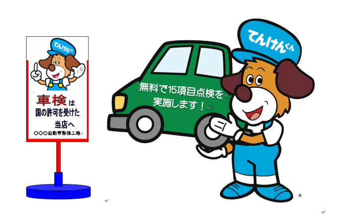 マイカー点検キャンペーンは、期間中に「てんけんくん」が目印の整備工場に